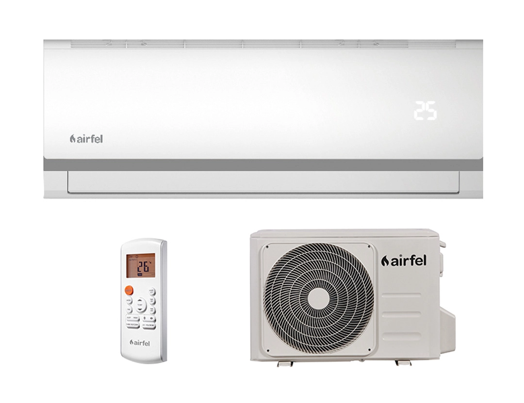 Airfel е инвертер клима уред со сплит систем, кој се состои од внатрешна и надворешна единица. Овој уред е погоден за ладење и греење на простории до 30 m². Со капацитет од 5.3 kW, климатизерот обезбедува енергетска ефикасност, со A++ класа за ладење и A+ класа за греење, што значи дека користи помалку енергија, помагајќи да ги намалите трошоците за струја.
